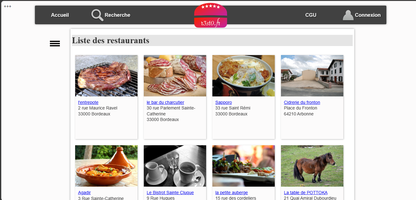Ce projet visait à appliquer les principes de séparation des responsabilités propres à ce modèle de conception. L'application offre aux utilisateurs la possibilité de s'inscrire, de parcourir une liste de restaurants, d'ajouter des "j'aime" à leurs établissements favoris et de consulter ou publier des avis sur ces derniers.